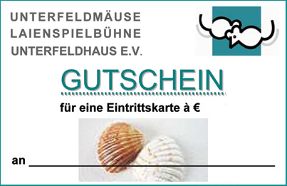 Unter der Rubrik "Kartenvorverkauf" haben wir dafür eine weitere Funktion "Gutschein-Bestellung" eingerichtet. Mit Hilfe entsprechender Auswahl-Möglichkeiten können Sie hier ganz individuell Ihre(n) Gutschein(e) zusammenstellen und Ihre Bestellung dann online an uns abschicken. Nach Erhalt Ihrer Überweisung senden wir Ihnen Ihre Gutscheine innerhalb von einem Werktag ohne weitere Kosten und ohne anfallende Vorverkaufsgebühren per Post zu. Und auf Wunsch wird der jeweilige Gutschein sogar mit einem von Ihnen vorgegebenen Namen personalisiert. Das ideale Geschenk für Freunde und Verwandte. Und Ihr Garant, sich Ihren ganz persönlichen Platz bei der nächsten Auführung der UNTERFELDMÄUSE schon weit im voraus zu sichern!