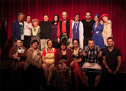 "Mit diesem Abschlussfoto endet (vorerst) das Theaterprojekt "Trotz aller Therapie". Die drei bisherigen Aufführungen spiegelten das gesamte Probenjahr wider: Es gab Höhen und Tiefen; trotzdem (oder gerade deswegen?) hat es sehr viel Spaß gemacht.